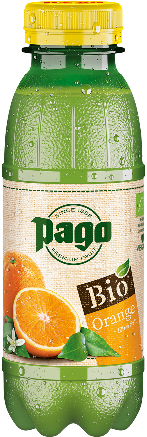 Pago Bio Orangensaft ist ein 100%-Saft, der ausschließlich aus biologischen Premium-Orangen aus den besten Anbaugebieten gewonnen wird.