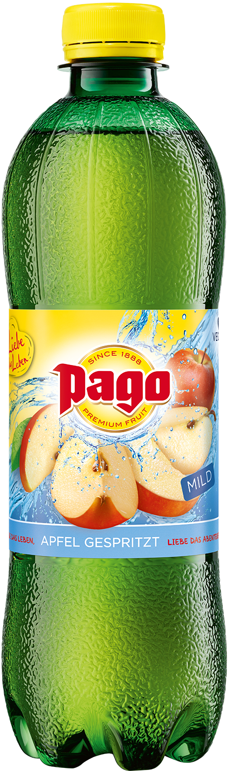 Pago gespritzt - unser beliebter Fruchtgenuss mit Apfel kombiniert mit mild prickelndem Wasser.